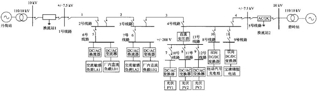 随着深圳地区电动汽车的推广使用,园区附近会有越来越多的电动汽车充电站,也可以将这些充电站接入直流系统,实现储能、电压调节等功能,减少换流设备的投资。